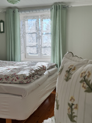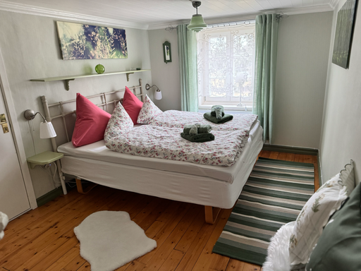 Zwei reizend eingerichtete Schlafzimmer im Obergeschoss haben eine wunderbare Aussicht, je ein Doppelbett (140 bzw. 180 cm breit) sowie je eine eigene Kleiderkammer.