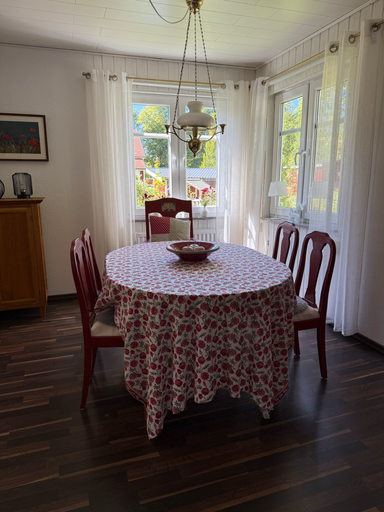 Im Esszimmer befindet sich ein Tisch mit bis zu 6 Stühlen.
