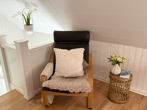 Zwei große Schlafzimmer, eine urige Schlafkammer für Kinder, WC und einen offener Sitz- und Arbeitslatz findet ihr im oberen Stockwerk